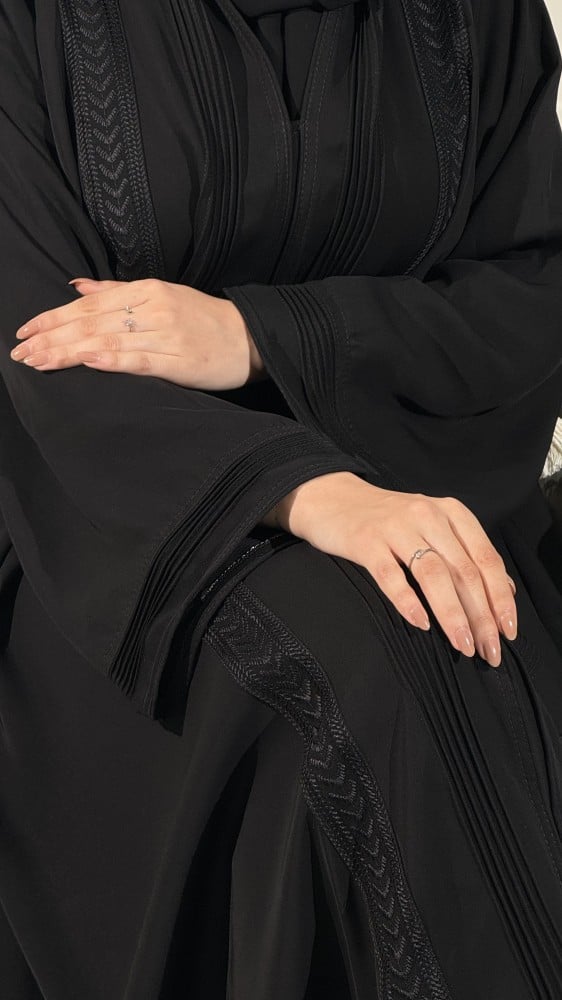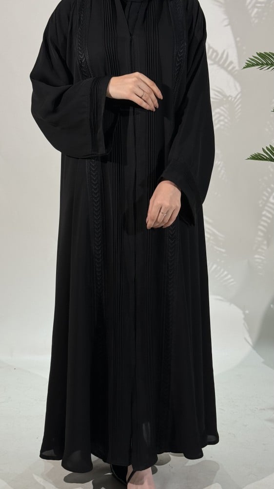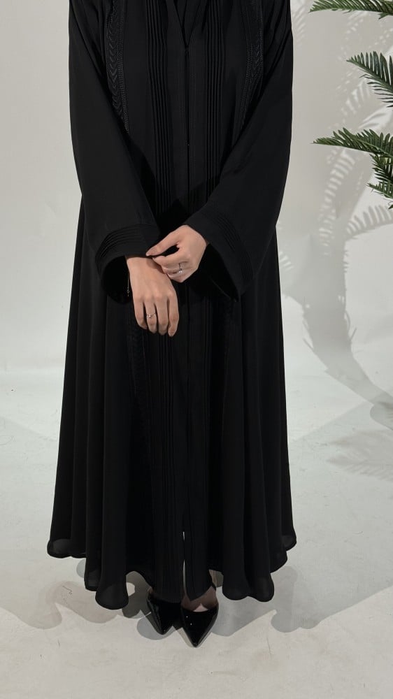 - طول العباية يؤخذ من الكتف الى أسفل الكعبين (من الأمام)