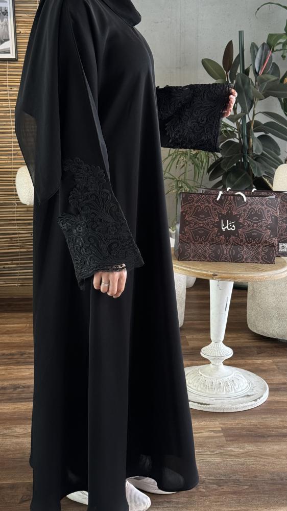 • طول العباية يؤخذ من الكتف الى أسفل الكعبين (من الأمام)